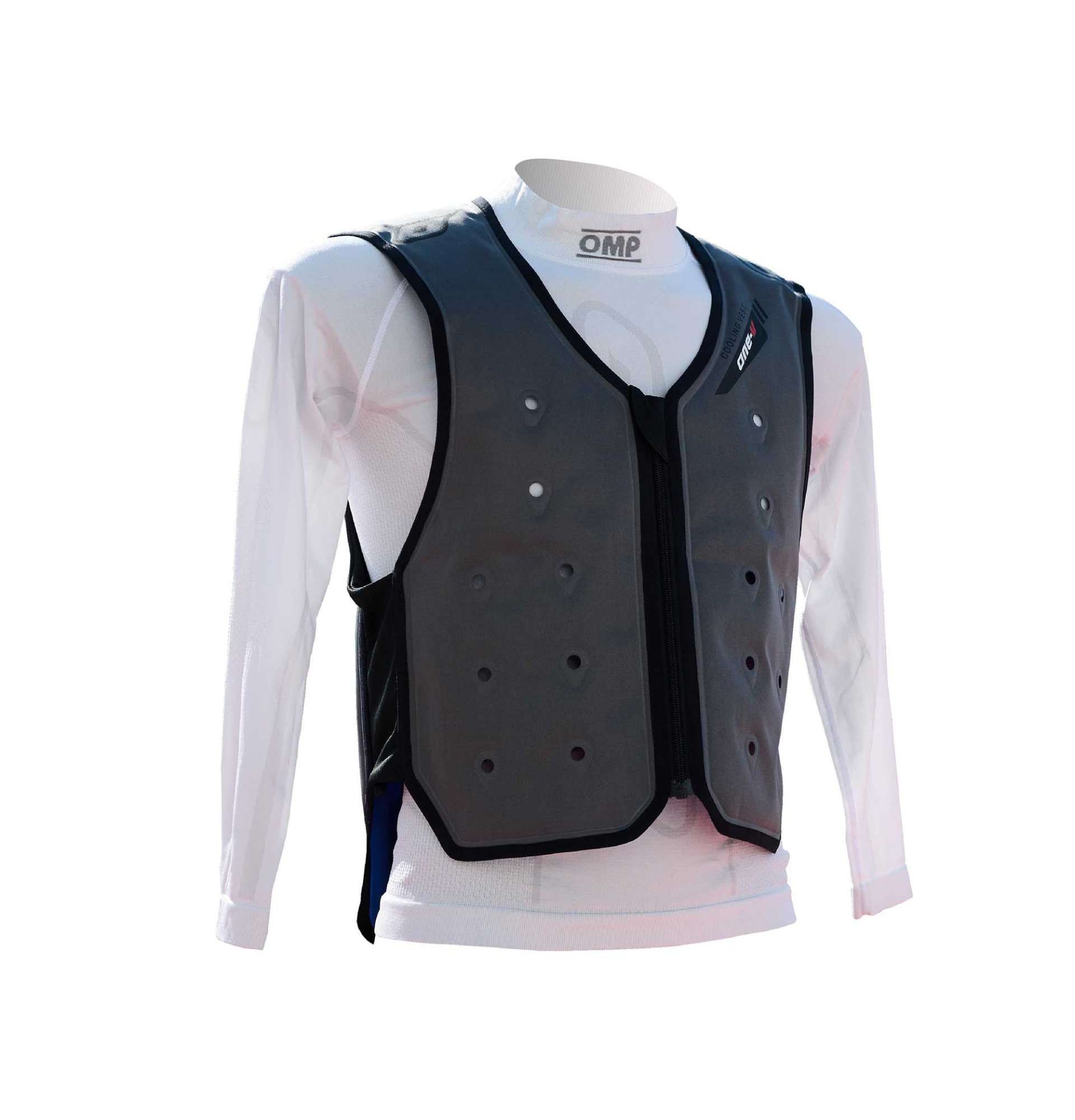Chłodząca, kartingowa kamizelka OMP ONE-V COOLING VEST. Specjalny system kanalików wypełniany wodą zapewnia przyjemne uczucie chłodu nawet w wysokich temperaturach. 3-warstwowa, lekka konstrukcja pozwala na skuteczne odprowadzanie ciepła na zewnątrz. Elastyczne panele po bokach zapewniają dodatkowy komfort i dopasowanie podczas użytkowania.