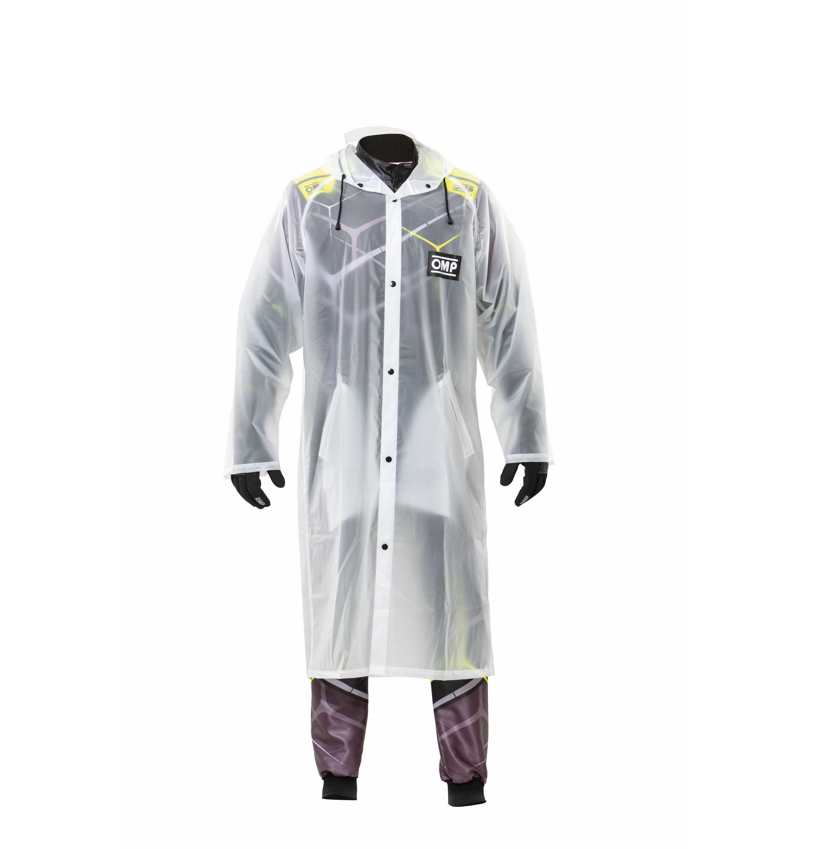 OMP KS RAINCOAT to przeciwdeszczowy płaszcz wykonany z lekkiego, odpornego i przeźroczystego tworzywa. Posiada kieszenie boczne oraz kaptur.