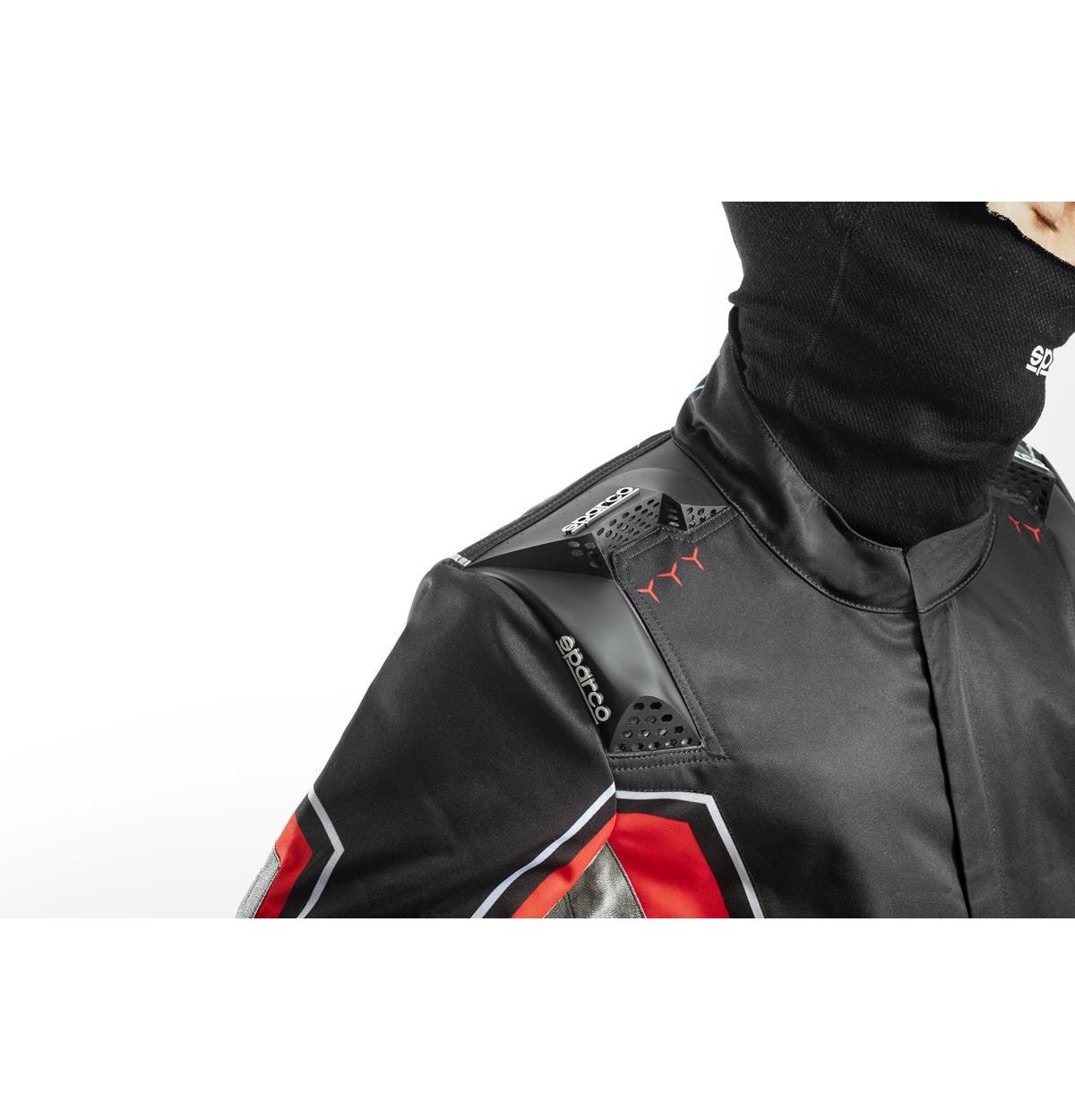 Kombinezon kartingowy Sparco Superleggera-K to najlżejszy kombinezon, jaki kiedykolwiek wyprodukowało Sparco, spełniający jednocześnie najnowsze wymagania homologacji FIA 8877-2022, gwarantując najwyższy poziom bezpieczeństwa. Jego innowacyjny system AIR-IN wykorzystuje silikonowe wloty na ramionach, które poprawiają przepływ powietrza przez kombinezon, zapewniając chłodzenie i redukcję potliwości.