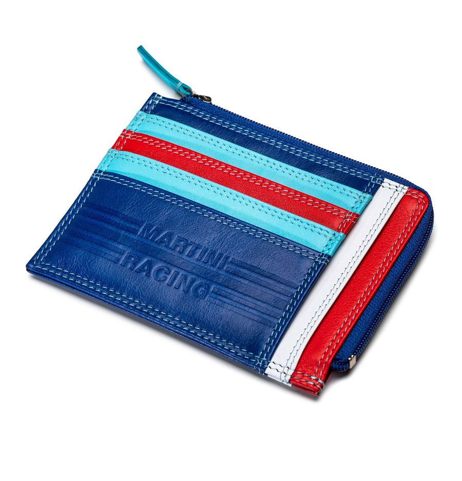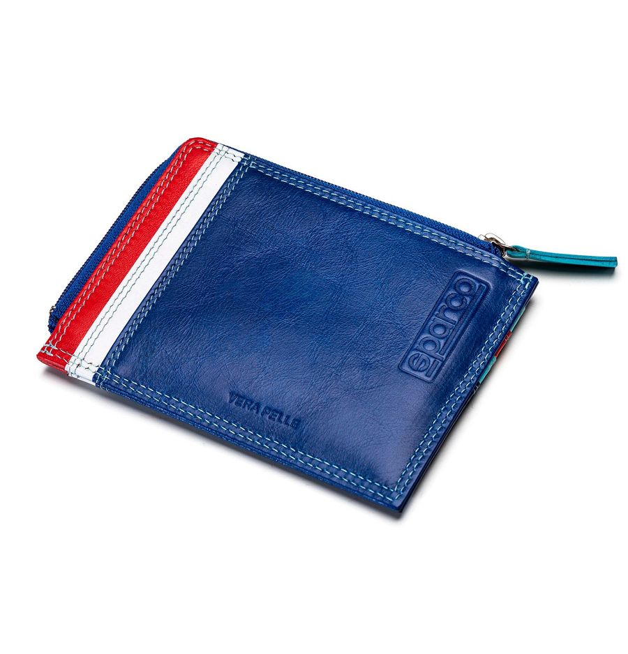 Praktyczny portfel Sparco w barwach Martini Racing. Wykonany z naturalnej skóry z wytłoczonym logo. Zapinany na zamek błyskawiczny z przegródkami na karty płatnicze. Wymiary: 12,5x9,5 cm.