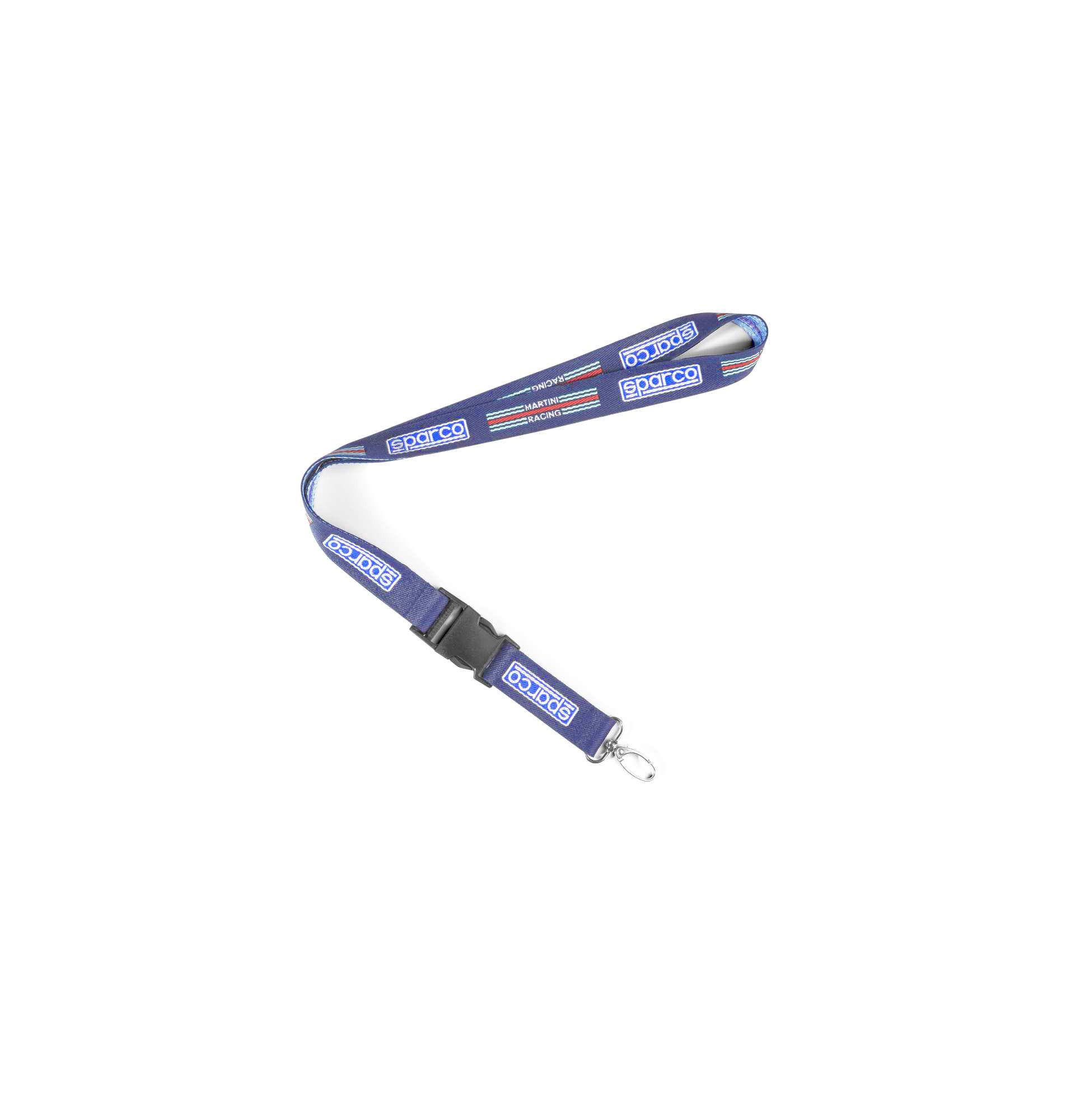 Smycz Sparco Martini Racing zakończona metalowym karabińczykiem.