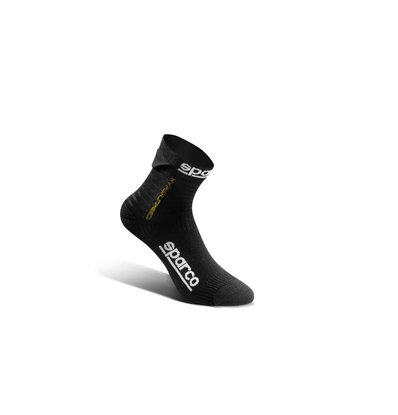 Skarpety Hyperspeed z gamingowej linii Sparco dedykowanej graczom. Komfortowe i oddychające, wyposażone w silikonowe wstawki zwiększające przyczepność oraz wzmocnienie na pięcie z materiału Cordura. Skarpety hypoalergiczne, wykonane z nylonowej mikrofibry zawierającej jony srebra.