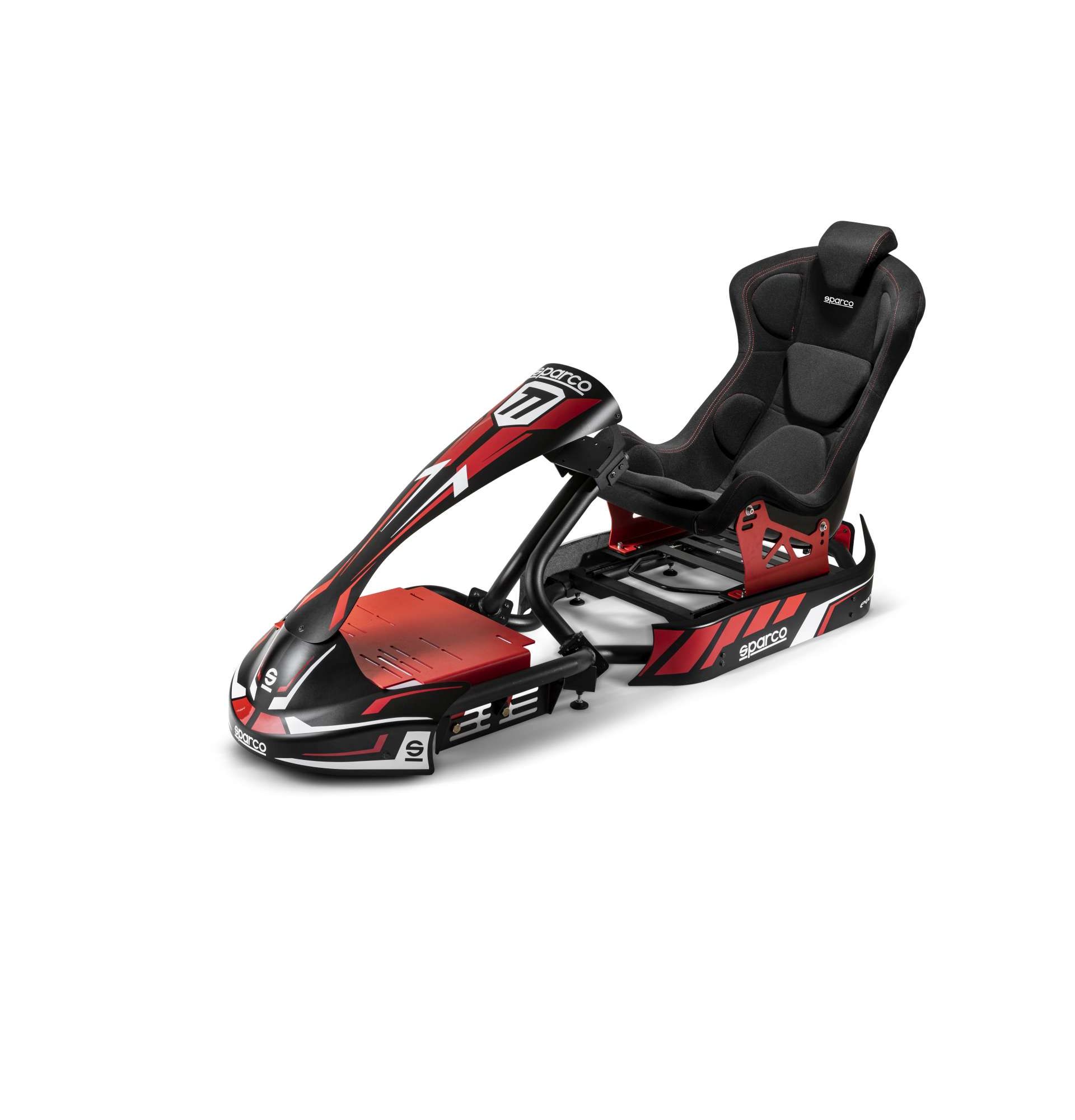 Symulator kartingowy SPARCO EVOLVE KART ENDURANCE. Dzięki regulacji umiejscowienia fotela, oraz odległości kierowcy od pulpitu i pedałów, symulator można w prosty sposób dostosować do gabarytów niemal każdego gracza. Wersja ENDURANCE zawiera wygodny fotel kubełkowy SPARCO ENDURANCE ze zdejmowanymi poduszkami, zapewniający komfort nawet podczas długich sesji. Nachylenie fotela inspirowane jest pozycją kierowców gokartów.