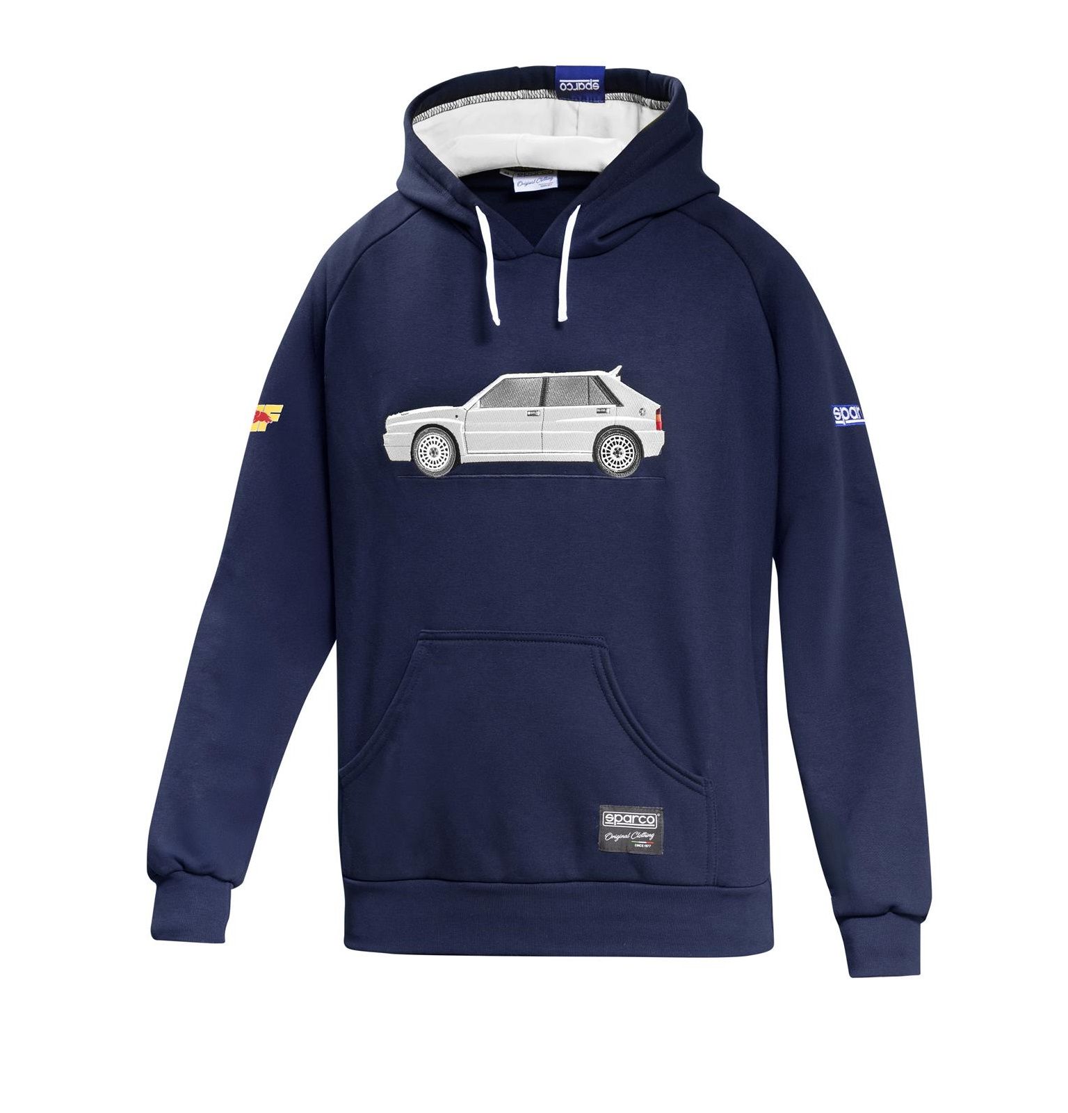 Bluza z kapturem Sparco Lancia HF Delta Integrale łączy w sobie komfort i wytrzymałość. Została zaprojektowana jako praktyczna warstwa odzieży do noszenia na co dzień. Mieszanka 65% bawełny i 35% poliestru zapewnia długotrwałą wygodę przy jednoczesnej odporności na regularne użytkowanie.
