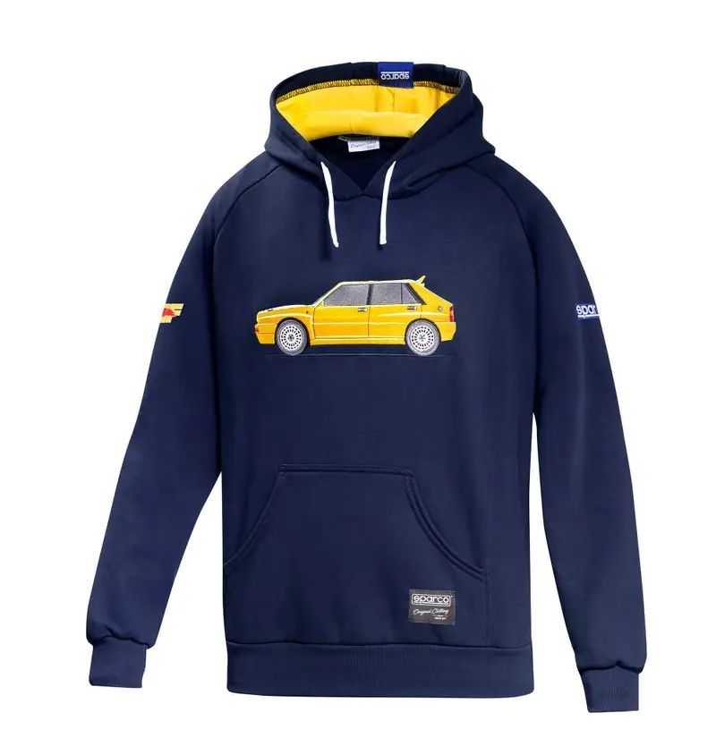 Bluza z kapturem Sparco Lancia HF Delta Integrale łączy w sobie komfort i wytrzymałość. Została zaprojektowana jako praktyczna warstwa odzieży do noszenia na co dzień. Mieszanka 65% bawełny i 35% poliestru zapewnia długotrwałą wygodę przy jednoczesnej odporności na regularne użytkowanie.