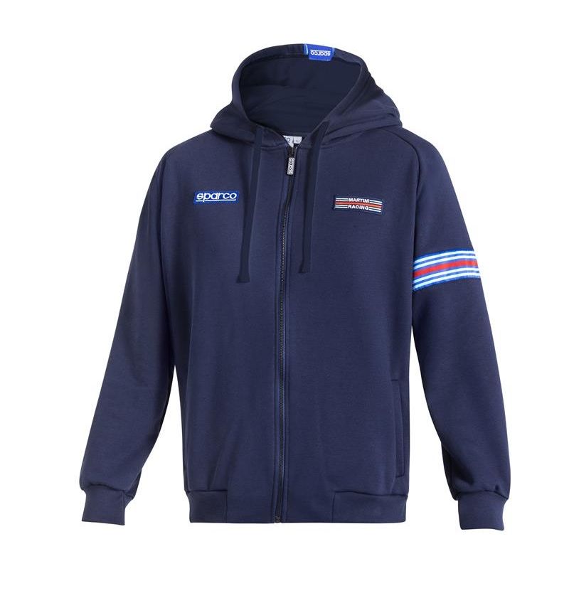 - Pasy Martini Racing i haft Sparco – haftowane logotypy oraz charakterystyczne pasy Martini Racing nadają bluzie sportowy charakter i subtelnie nawiązują do legendarnej historii motorsportu, zachowując nowoczesny styl.