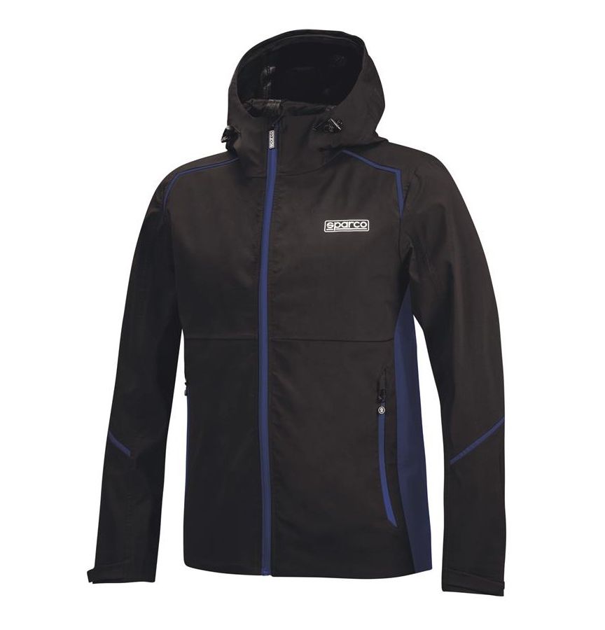 Kurtka wodoodporna Sparco Shell zapewnia suchość i komfort w deszczowych warunkach. Wykonana z trwałych materiałów i zaprojektowana z myślą o praktyczności, łączy niezawodną ochronę przed wodą z szeregiem funkcjonalnych rozwiązań.