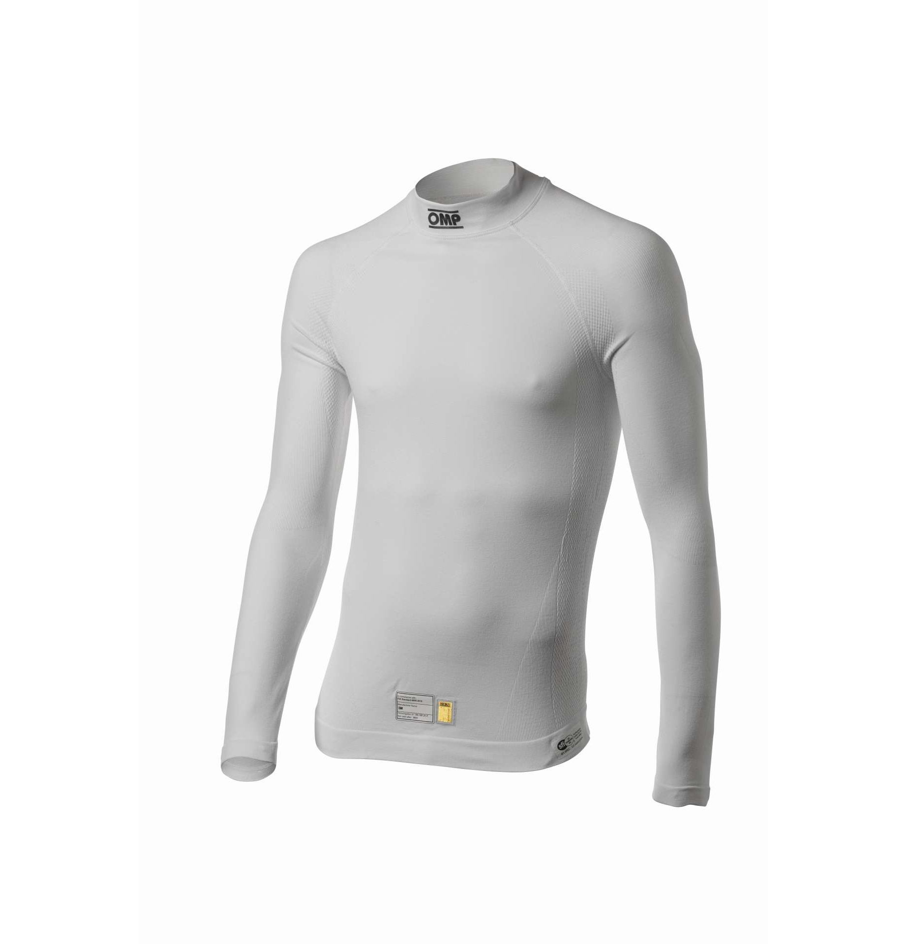 Bezszwowy golf OMP z topowej linii ONE EVO. Wykonany z odpornego na ogień, oddychającego materiału znakomicie dopasowującego się do kształtu ciała. Wstawki z materiału "3D Cube" zapewniają komfort w miejscach bardziej narażonych na pocenie. Homologacja FIA 8856-2018.