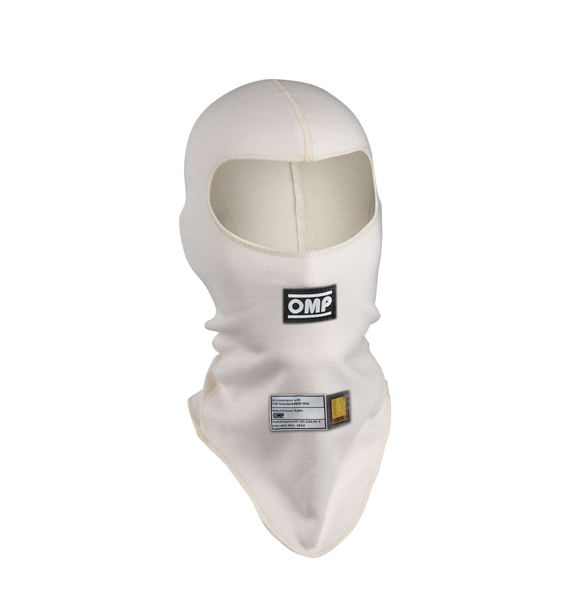 Jednootworowa kominiarka OMP First (wersja 2022). Płaskie szwy, homologację FIA 8856-2018.