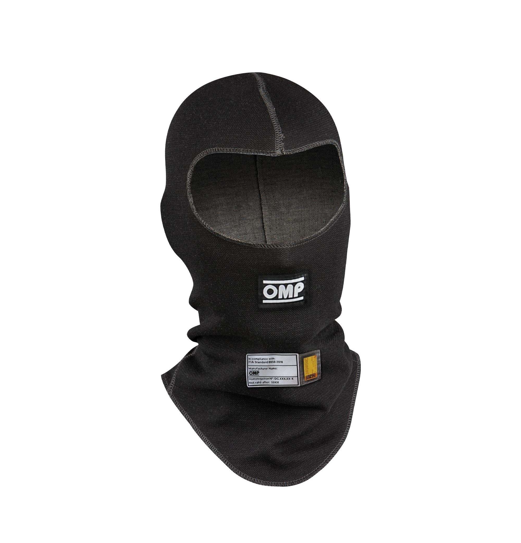 Jednootworowa kominiarka OMP First (wersja 2022). Płaskie szwy, homologację FIA 8856-2018.