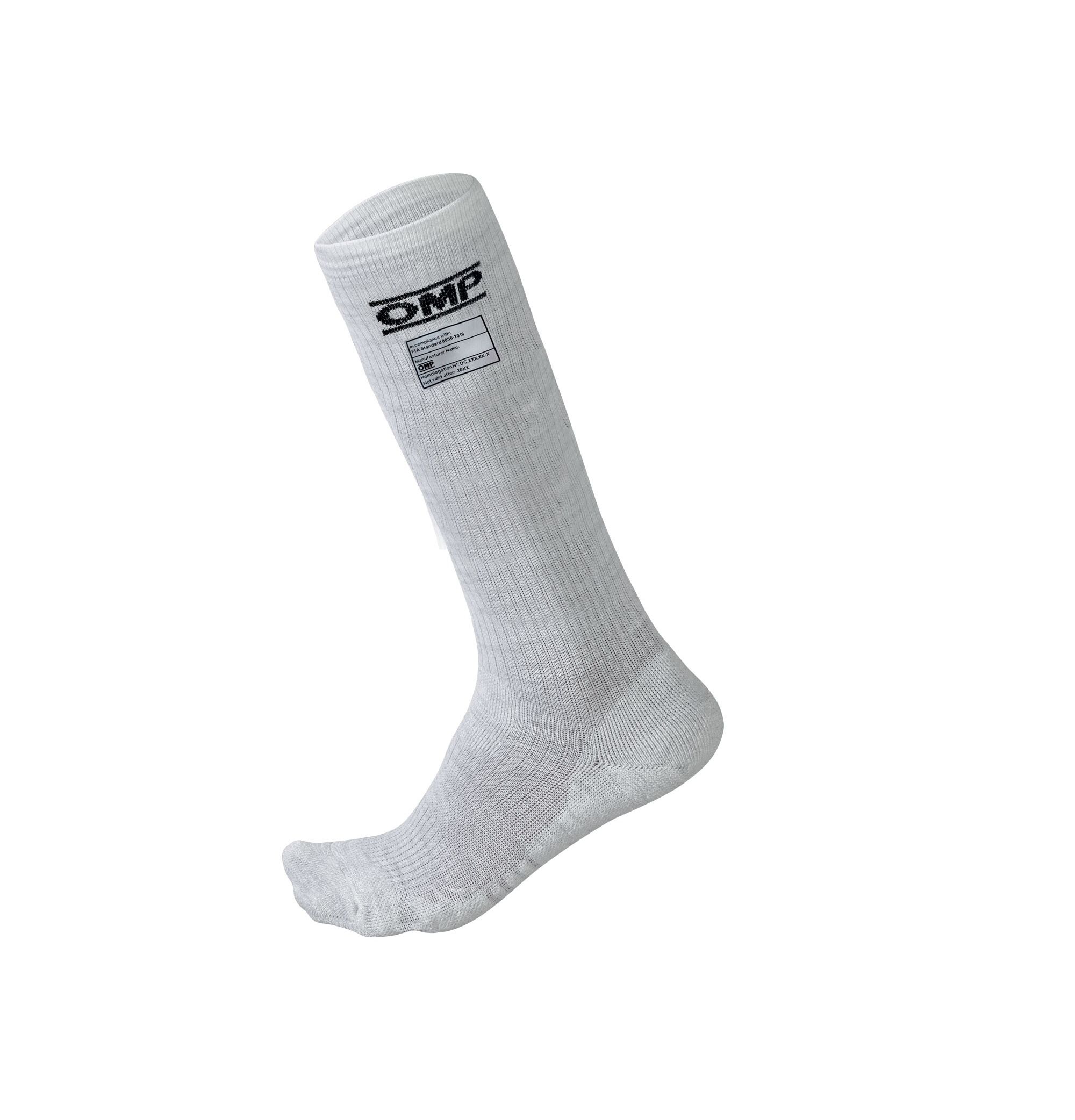 Skarpety z topowej linii OMP ONE. Wykonane z wykorzystaniem zaawansowanych technik dziewiarskich. Nie powodują dyskomfortu, poprawiają krążenie, redukują zmęczenie stóp podczas jazdy. Homologacja FIA 8865-2018.