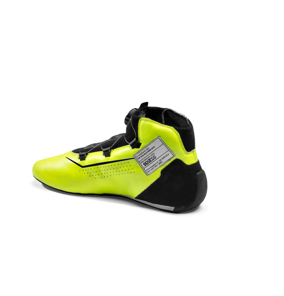 - Cholewka z miękkiej skóry cielęcej z ognioodporną podszewką – łączy elastyczność i trwałość skóry cielęcej z ognioodporną podszewką, zapewniając komfort, ochronę i zgodność z normami bezpieczeństwa wyścigowego.