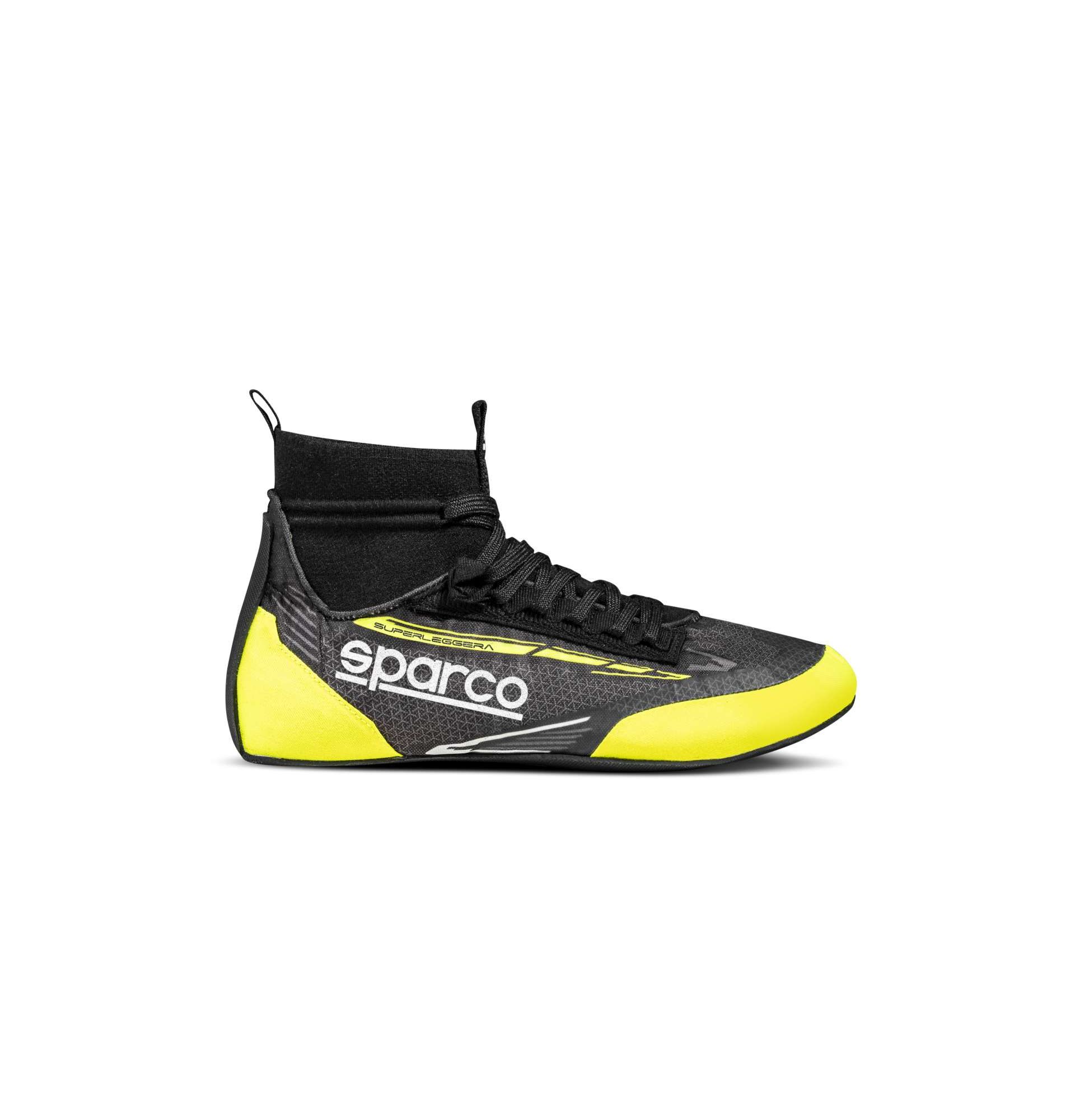 Sparco Superleggera to topowe, wyjątkowo lekkie, sznurowane, wysokie buty rajdowe. Wykonane całkowicie we Włoszech z wysokiej jakości skóry oraz materiału wzmocnionego przezroczystym silikonem. Górna część to pewien rodzaj wbudowanej, dobrze przylegającej do nogi skarpety. Wewnętrzna część cienkiej podeszwy wykonana z prawdziwego karbonu, z tylnym "spoilerem" zapewniającym wsparcie pięty podczas jazdy. Homologacja FIA.