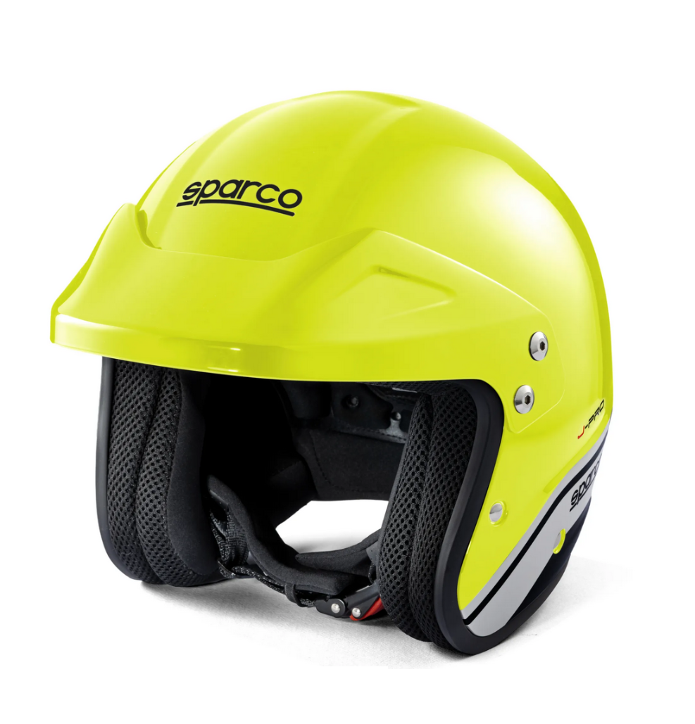 Sparco J-Pro to otwarty kask, przeznaczony do użytku w wydarzeniach, które nie wymagają homologacji FIA ani Snell, takich jak track daye w samochodach z zamkniętym nadwoziem. Wykonany z lekkiej skorupy ATM, wyposażony w miękką i komfortową, hipoalergiczną wyściółkę oraz daszek redukujący oślepianie w słoneczne dni.