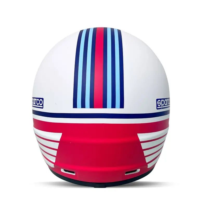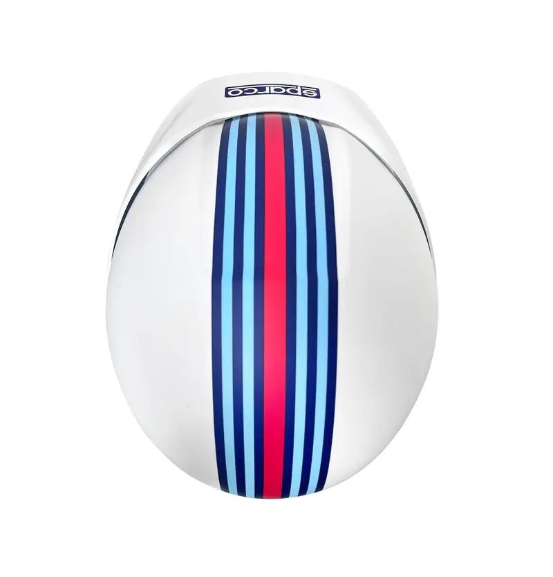 Kask Sparco Martini Racing J-Pro został zaprojektowany do aktywności motorsportowych niewymagających homologacji FIA ani Snell, takich jak track day’e w pojazdach z zamkniętym kokpitem. Wykonany z lekkiej skorupy ATM, łączy bezpieczeństwo z komfortem, oferując hipoalergiczną wyściółkę oraz daszek antyodblaskowy poprawiający widoczność.
