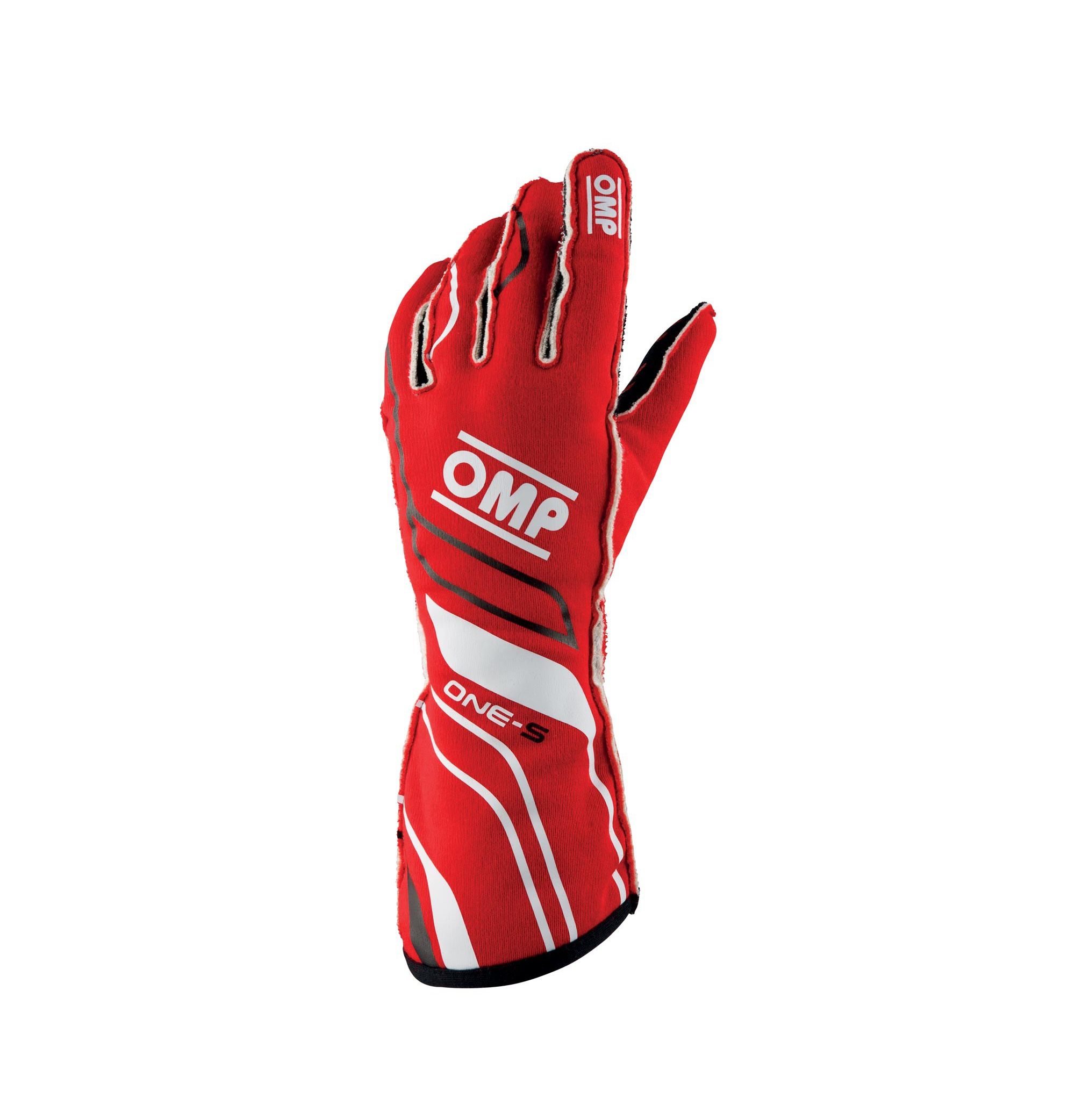 Profesjonalne, ultralekkie rękawice rajdowe One-S włoskiej firmy OMP (wersja 2020). Posiadają antypoślizgowe silikonowe wstawki, szwy zewnętrzne oraz ściągacz w nadgarstku. Dostępne w pięciu wariantach kolorystycznych. Nowa homologacja FIA 8856-2018.
