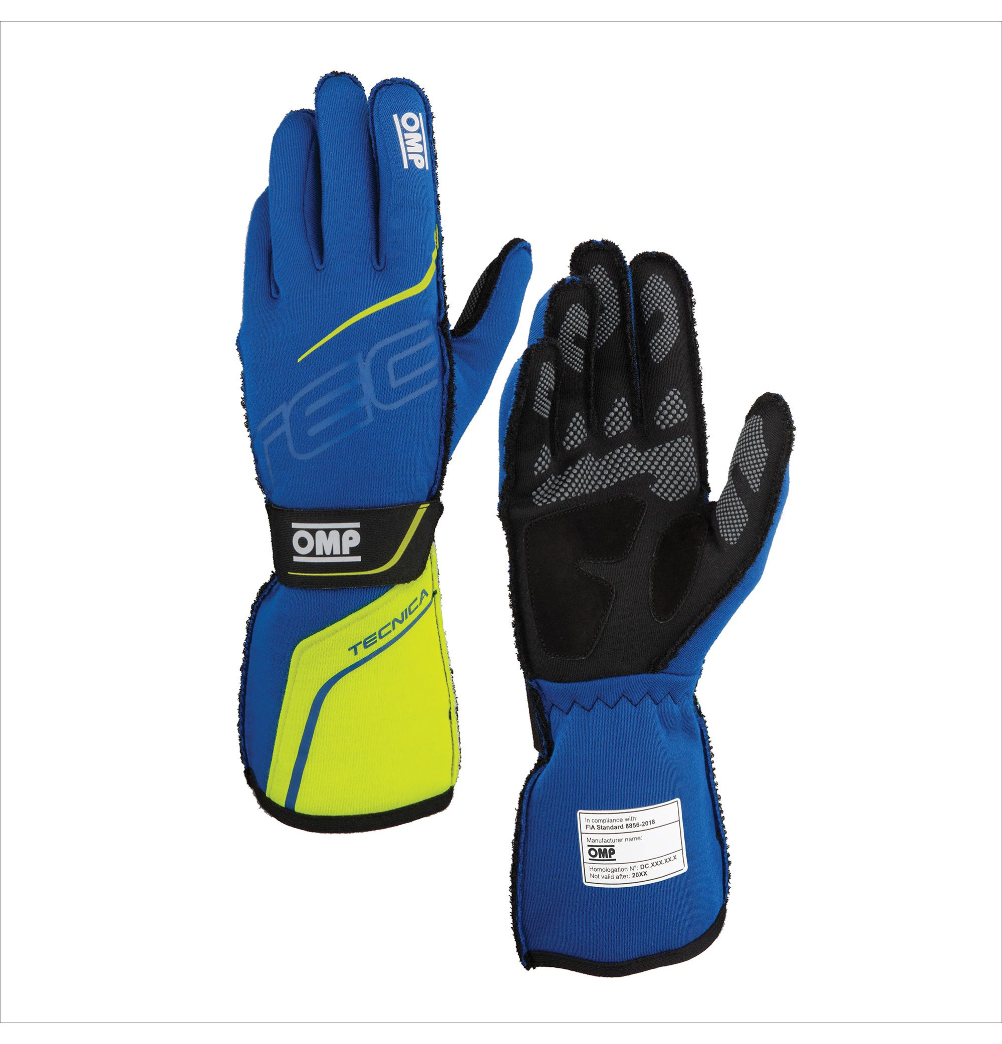 Rękawice OMP Tecnica 2025 FIA 8856-2018 niebiesko-żółte