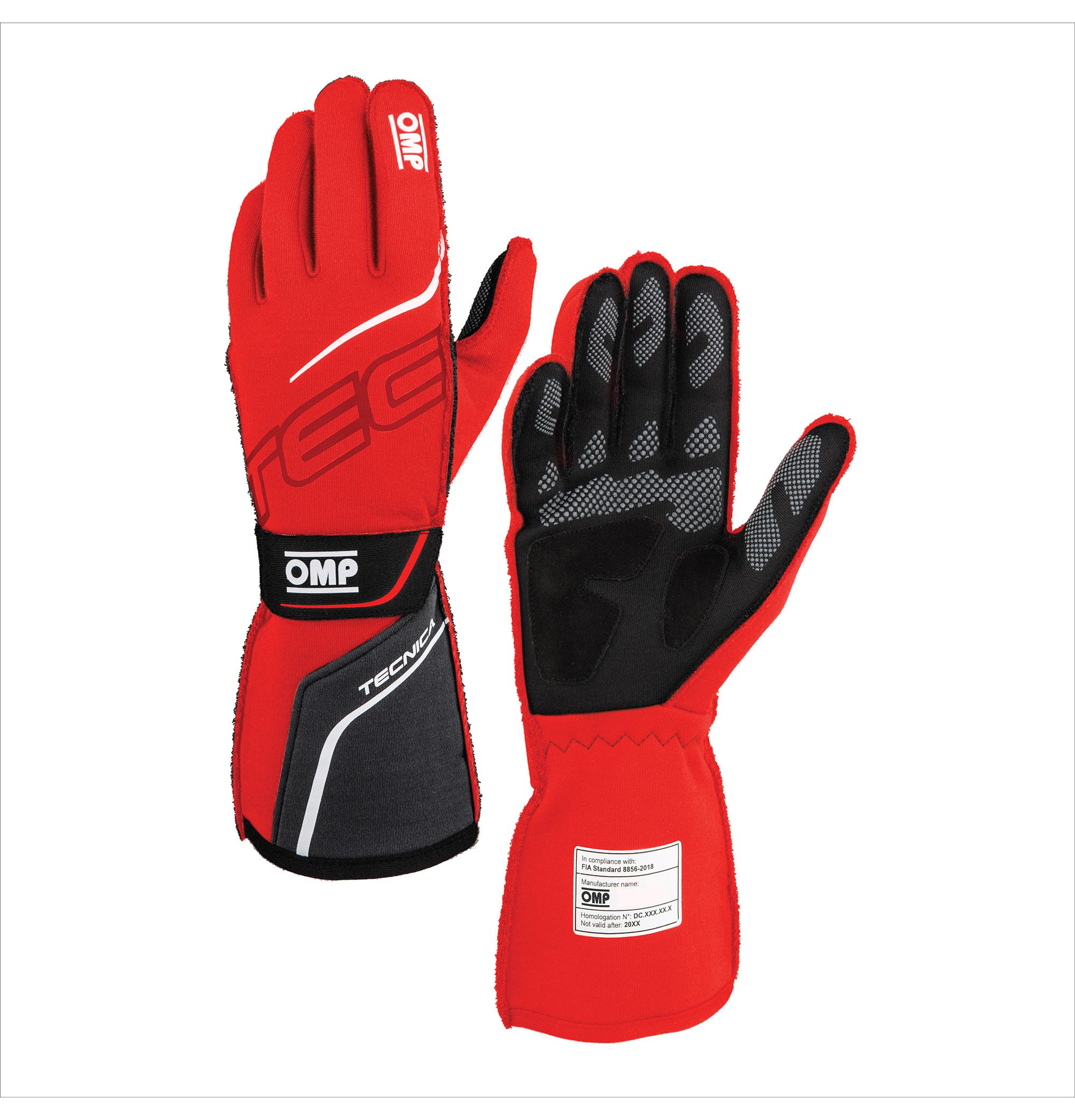 Rękawice OMP Tecnica 2025 FIA 8856-2018 czerwono-czarne