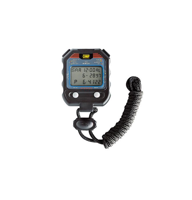 Stoper ręczny OMP. 60 zapisów okrążeń. Pokazuje najszybsze i najwolniejsze okrążenie oraz średnią.