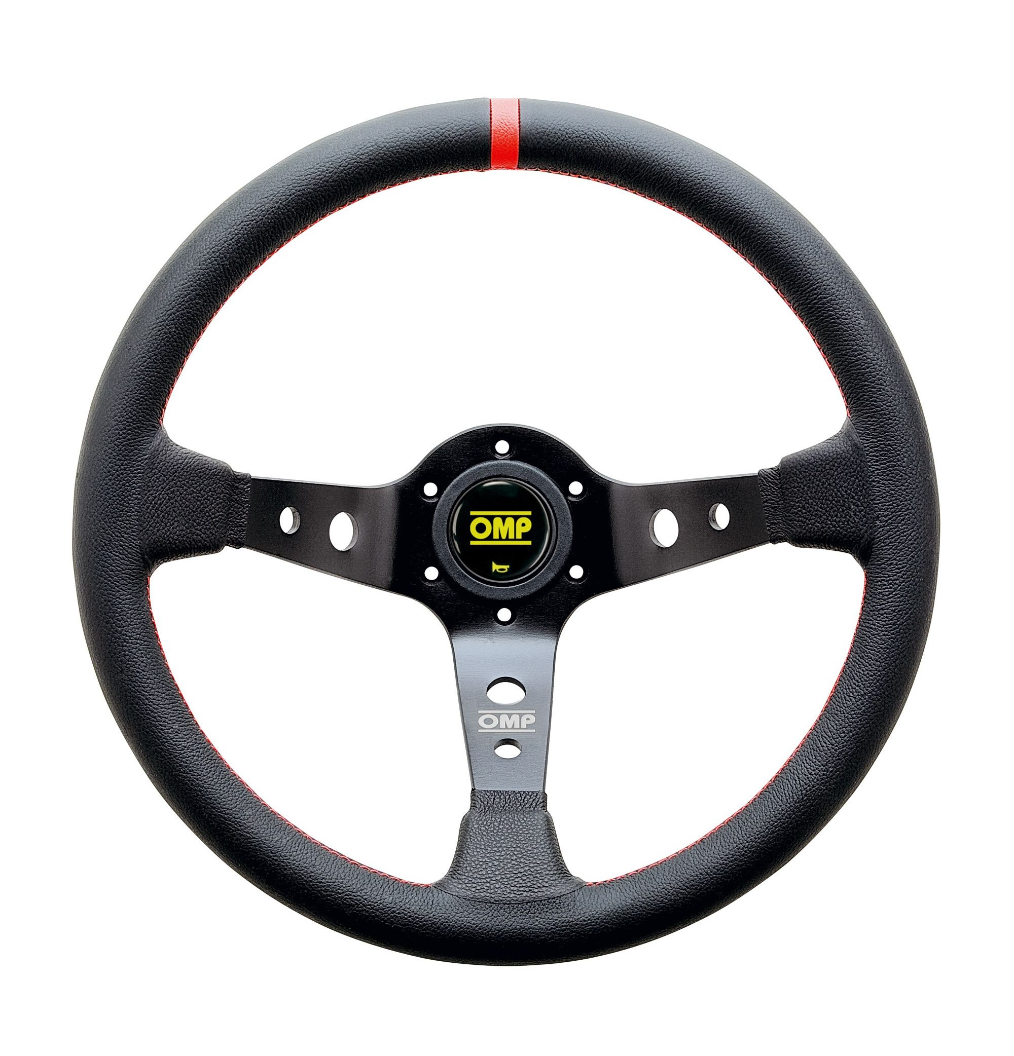 Kierownica skórzana OMP CORSICA – czarna z czerwonym obszyciem, odsadzenie 95 mm. Średnica 350 mm. Uchwyt 30/28 mm. Mocowanie na 6 śrub.