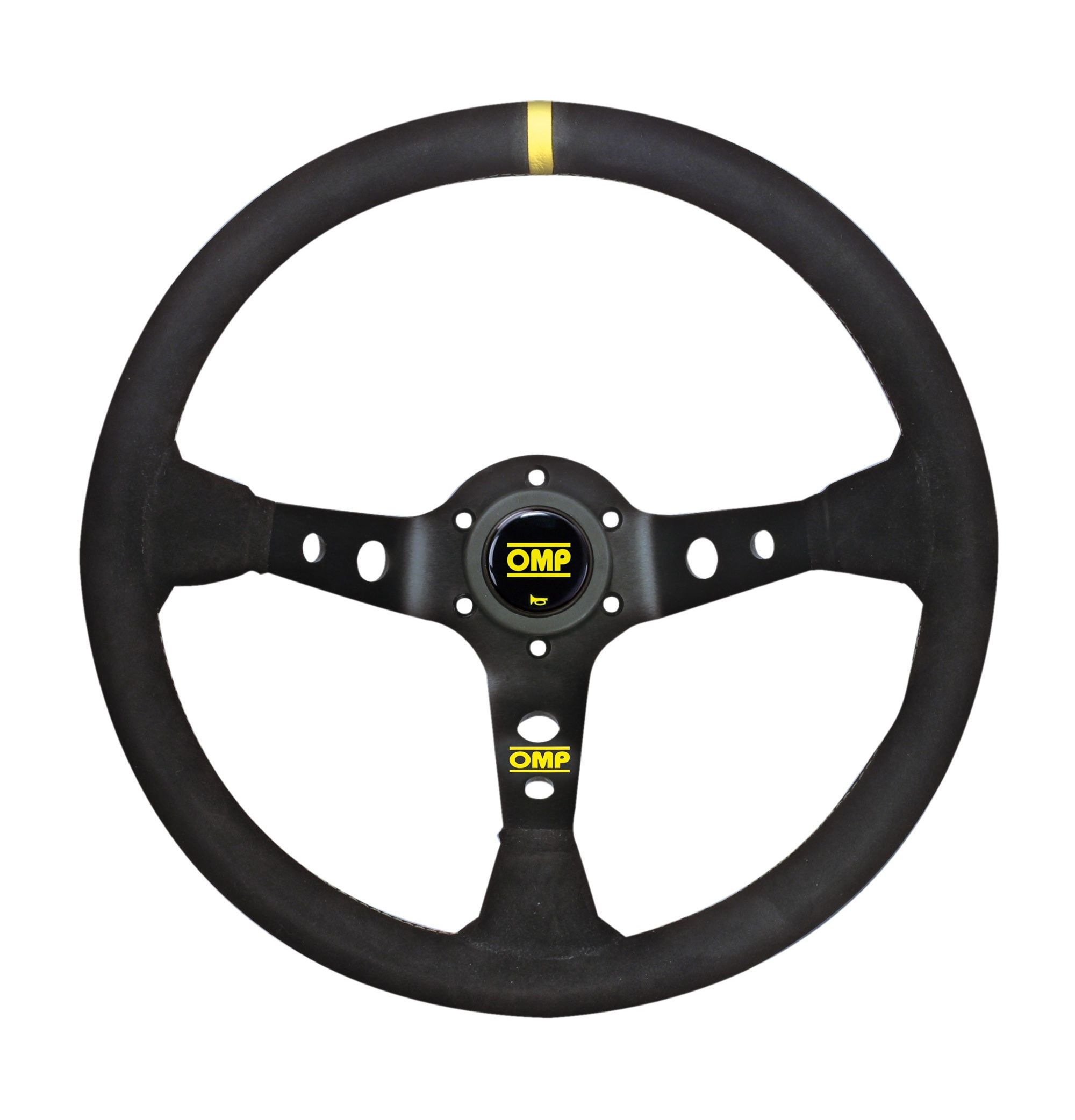 Kierownica zamszowa OMP CORSICA 330 – czarna z żółtym obszyciem, odsadzenie 95 mm. Średnica 330 mm. Uchwyt 30/28 mm. Mocowanie na 6 śrub.