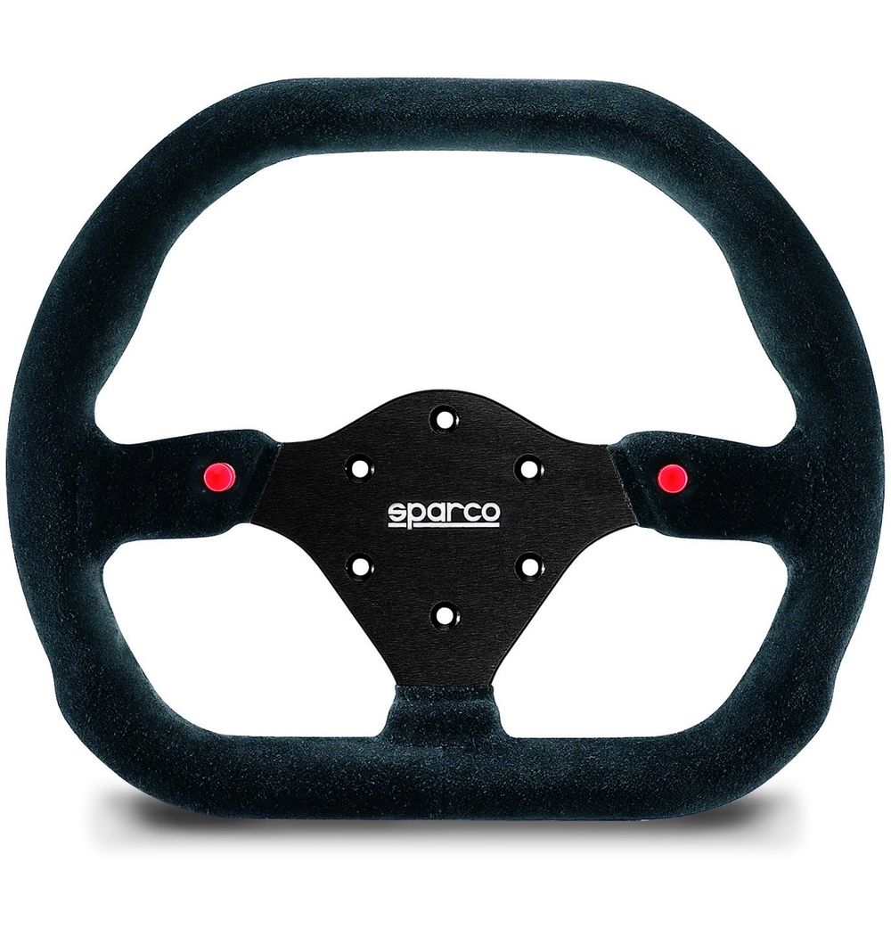 Kierownica zamszowa SPARCO P310 – czarna z czarnym obszyciem, płaska. Średnica 270 mm. Uchwyt 35/28 mm. Mocowanie na 6 śrub.