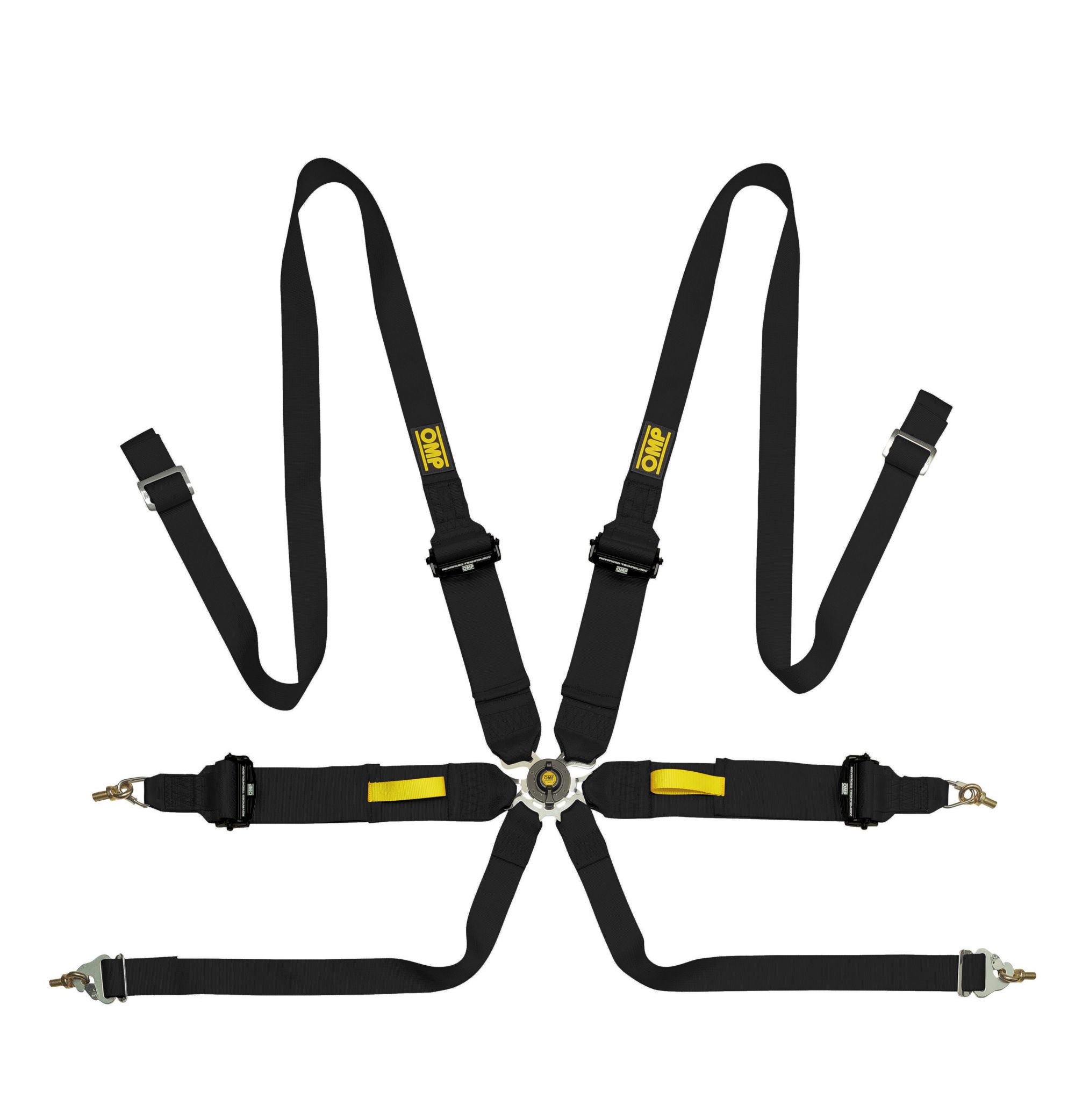 Ultralekkie, profesjonalne, 6-punktowe pasy bezpieczeństwa OMP TECNICA 3+2 DA0203HL. Cechy charakterystyczne: