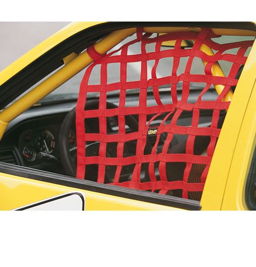 Nylonowa siatka bezpieczeństwa na okno OMP. Wymiary kratki: 60x60 mm. Wykonana według załącznika J (FIA).