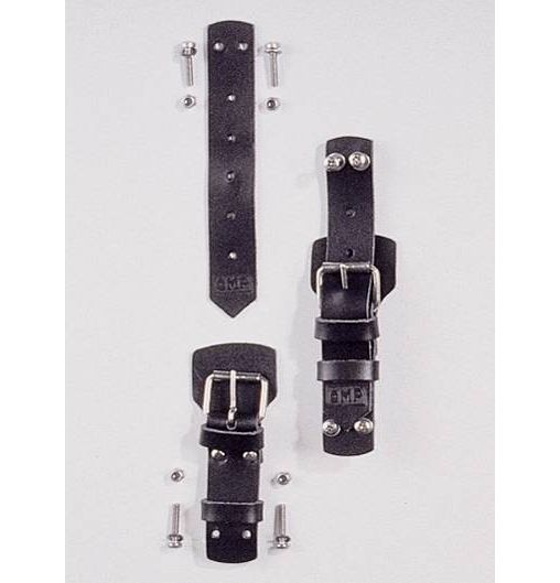 Skórzane zapinki OMP w postaci pasków zapinanych na sprzączkę.