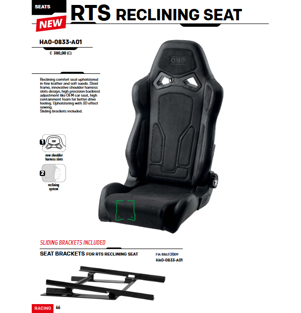 Fotel OMP RTS to regulowany sportowy fotel z ramą stalową, zaprojektowany z myślą zarówno o osiągach, jak i komforcie. Charakteryzuje się połączeniem wysokiej jakości skóry i miękkiego zamszu, uzupełnionym o przeszycia z efektem 3D, co zapewnia nowoczesny wygląd i wysoką trwałość.