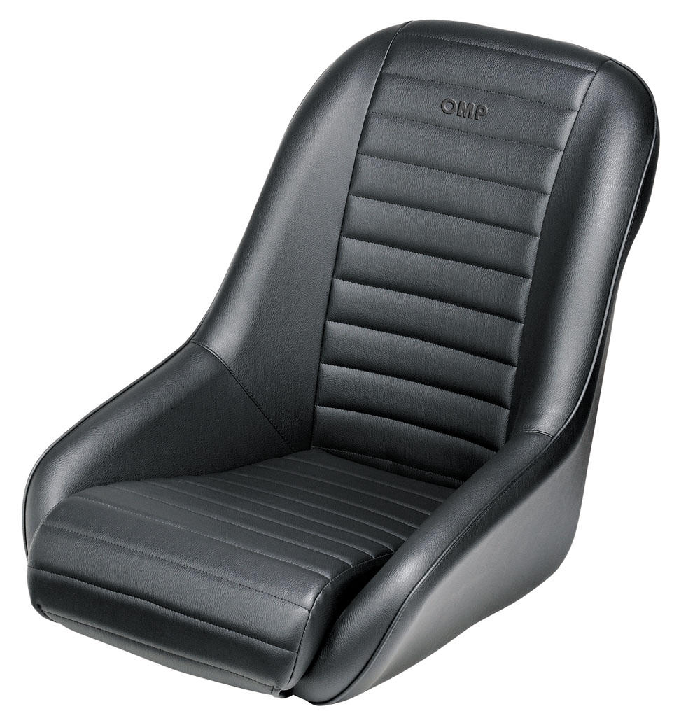 Linia VINTAGE. Fotel wykonany w konstrukcji rurkowej. Pokryty imitacją skóry z wertykalnymi przeszyciami. Znakomity do samochodów historycznych. Waga 7 kg.