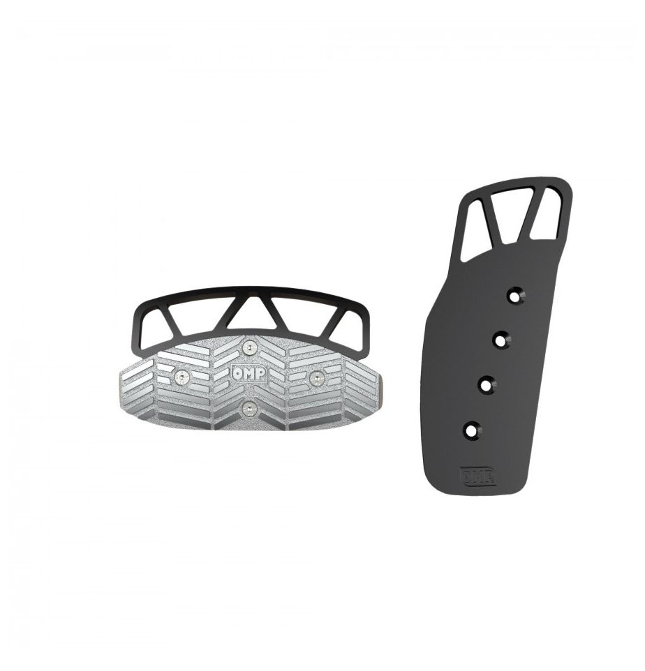 Zestaw nakładek na pedały OMP do automatycznej skrzyni biegów (2 szt.), wykonane z aluminium - zestaw stalowych śrub w komplecie. Dostępne w 2 kolorach: srebrnym i czarnym.