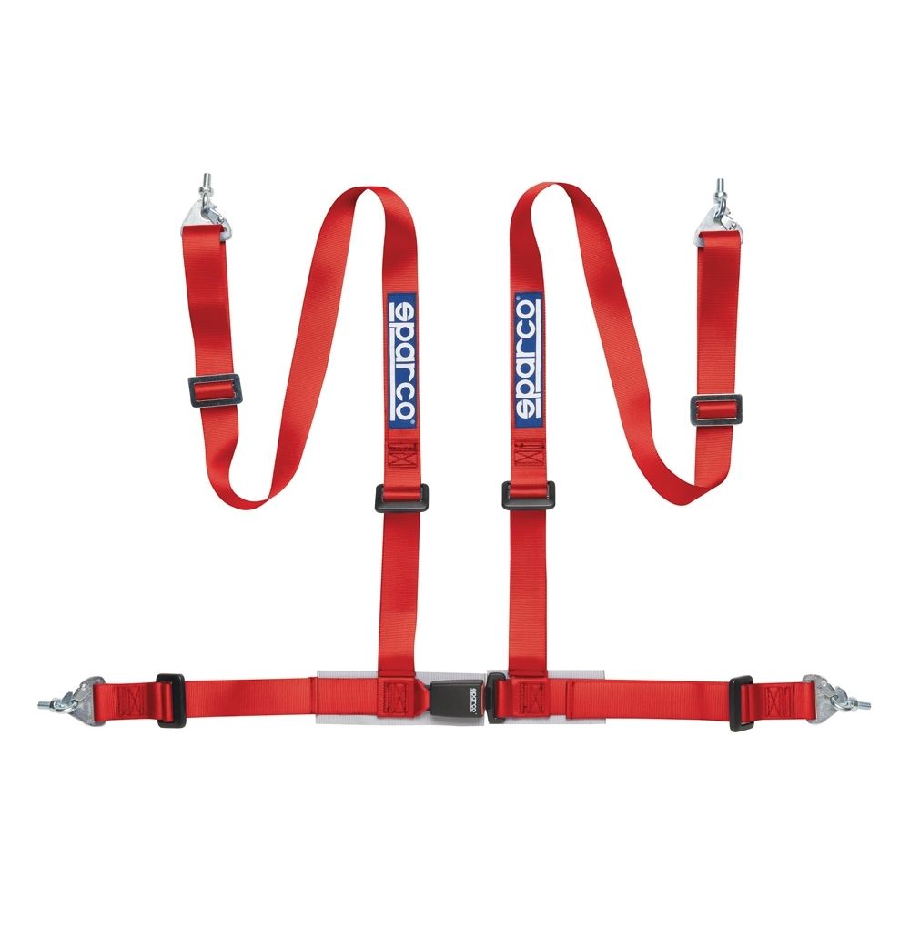 Tuningowe pasy bezpieczeństwa SPARCO - 2", 4-punktowe z homologacją ECE. Mocowanie za pomocą śrub oczkowych (w komplecie).